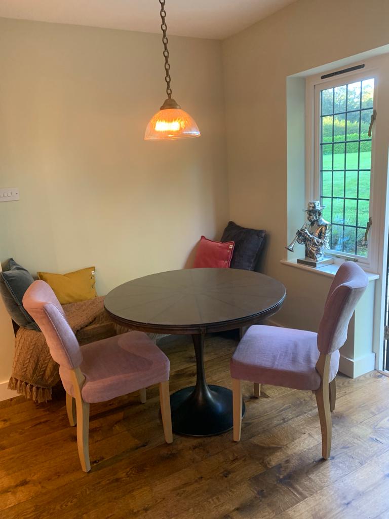 Pendant kitchen lighting, herringbone flooring, kitchen island - kitchen refurbishment by Thomson Properties, kitchen and bathroom specialists Surrey and Sussex